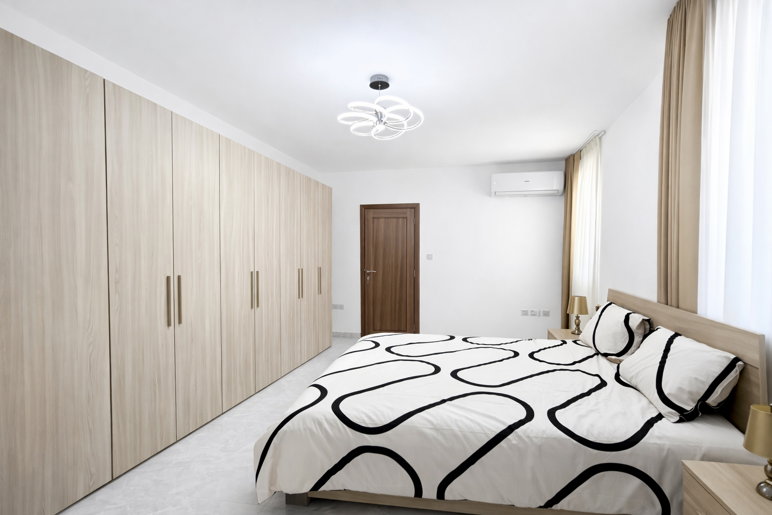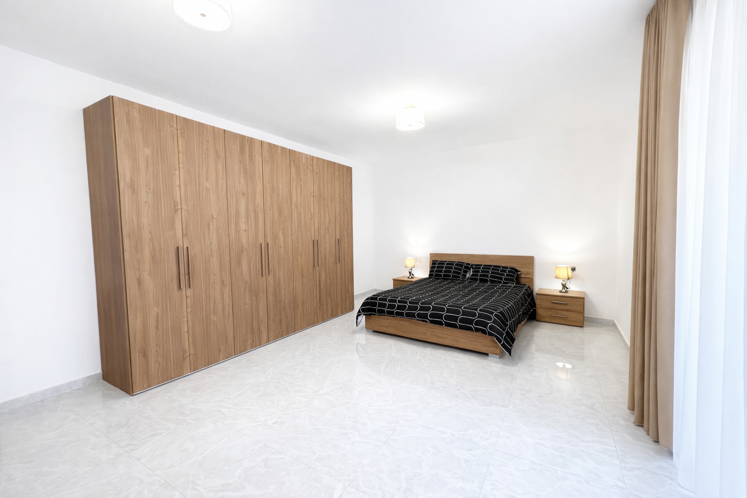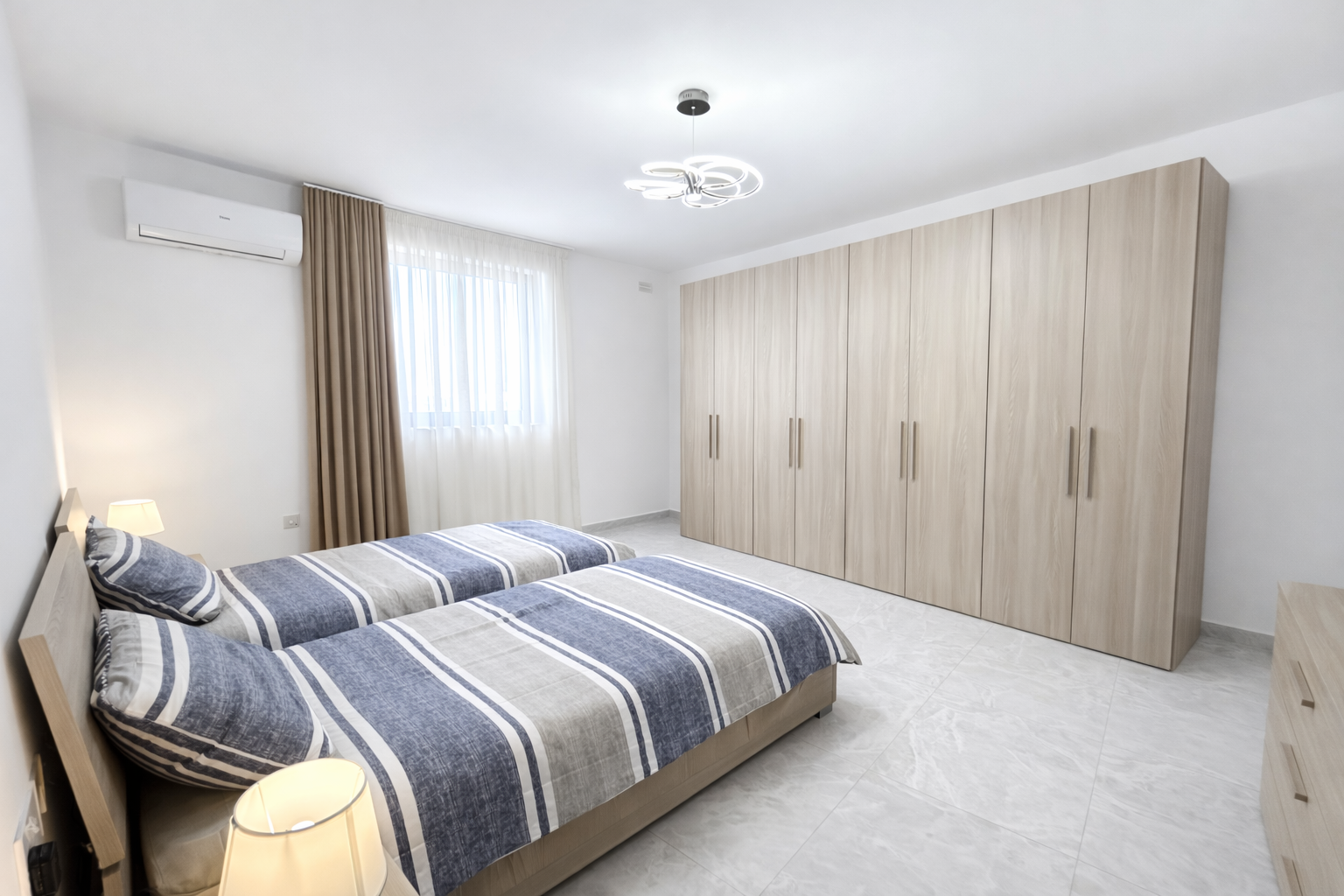 This never-lived-in property offers three spacious bedrooms, including two elegant double bedrooms and a well-sized twin room, each complemented by generous built-in wardrobes providing excellent storage and clean design lines.