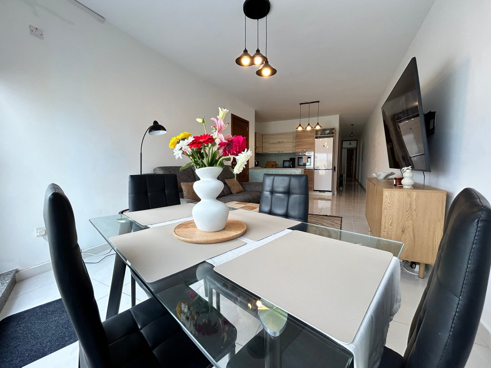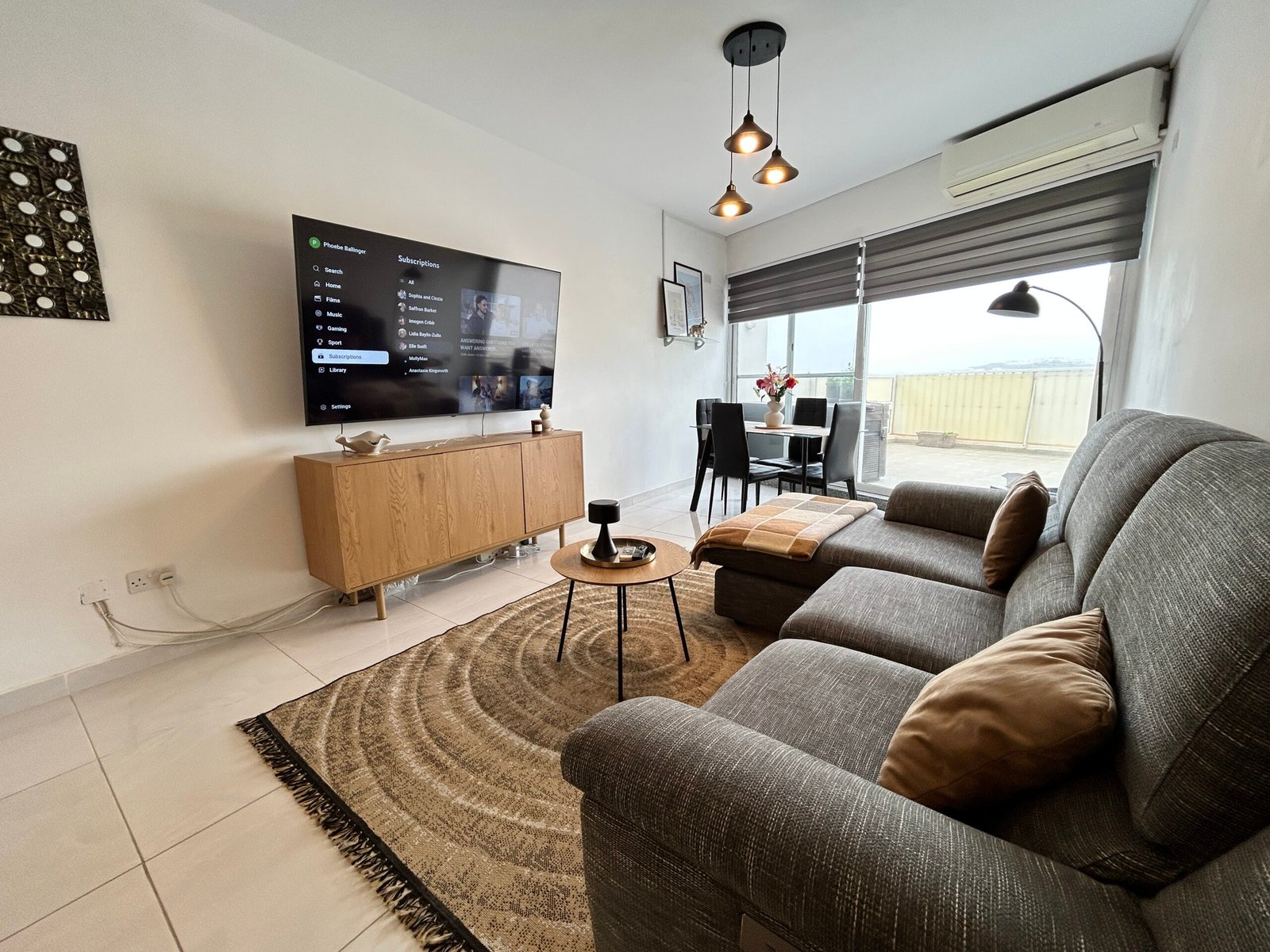 The property comprises a bright open-plan kitchen, living, and dining area, finished to a good standard and leading onto a spacious terrace. The outdoor area features a jacuzzi, which will be maintained by the tenant.